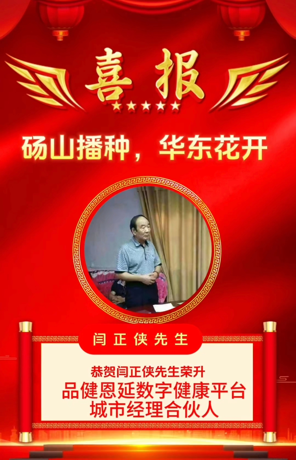 恭贺闫正侠先生!从砀山起步到成为华东市场的城市经理合伙人,这不仅是您个人的荣耀,更是品健恩延在华东深耕的重要里程碑。